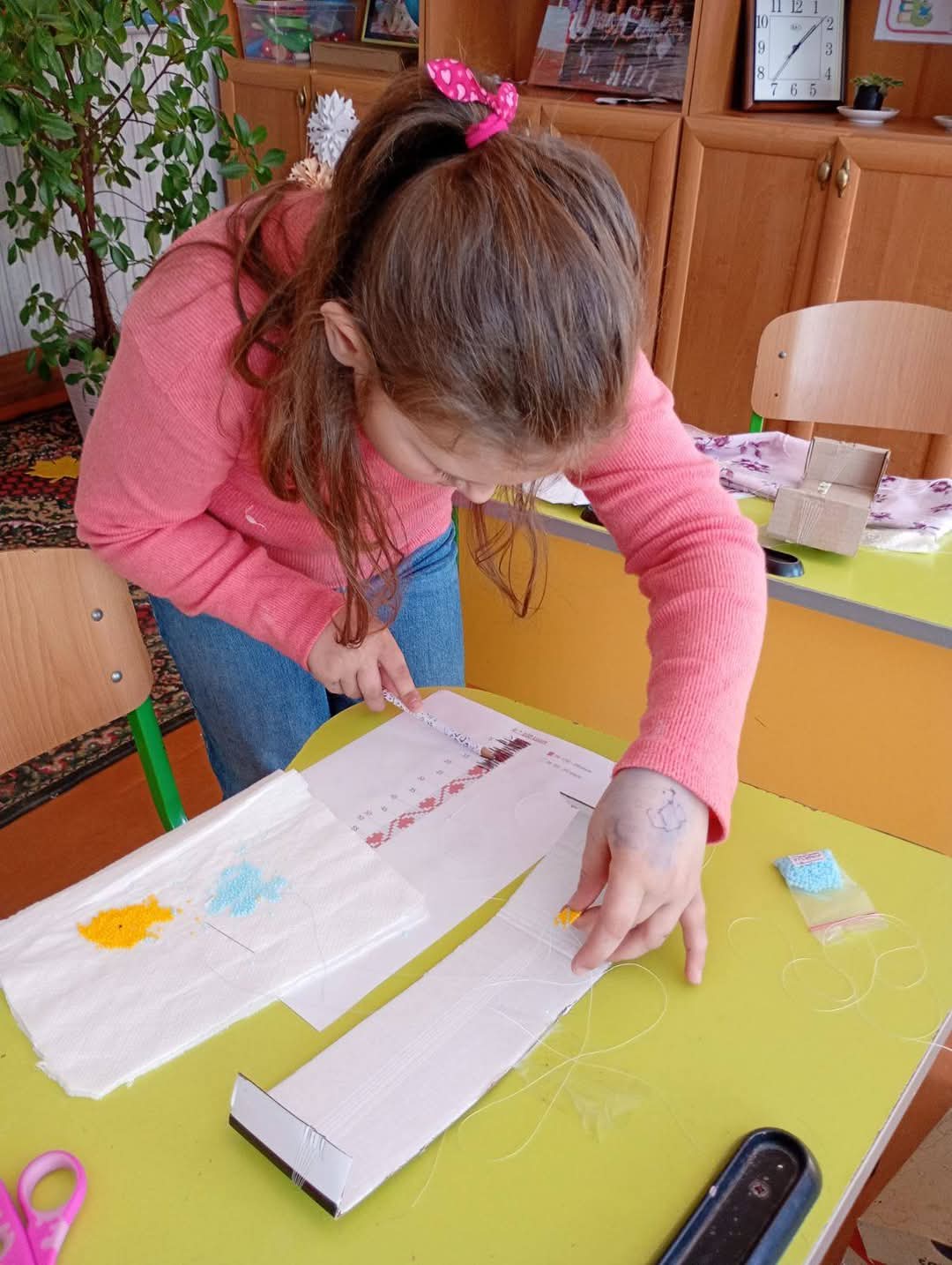 Бажання і уважність, помножені на терпіння, дорівнюють вислову: "Я можу і вмію". Саме під таким гаслом 18 березня пройшов майстер-клас з плетіння бісером у 3 класі. Провела його мама учениці, справжня майстриня своєї справи, Олена Василівна Дядюк. У її руках маленькі бісеринки перетворюються на чудові роботи. Дівчатка зосереджено вчилися читати схему, набирати бісер на голку і правильно закріплювати його у виробі. Скільки радості було, коли на яскравих браслетиках з'явилися перші сплетені сердечка. Світ українського декоративно- ужиткового мистецтва захопив юних майстринь.