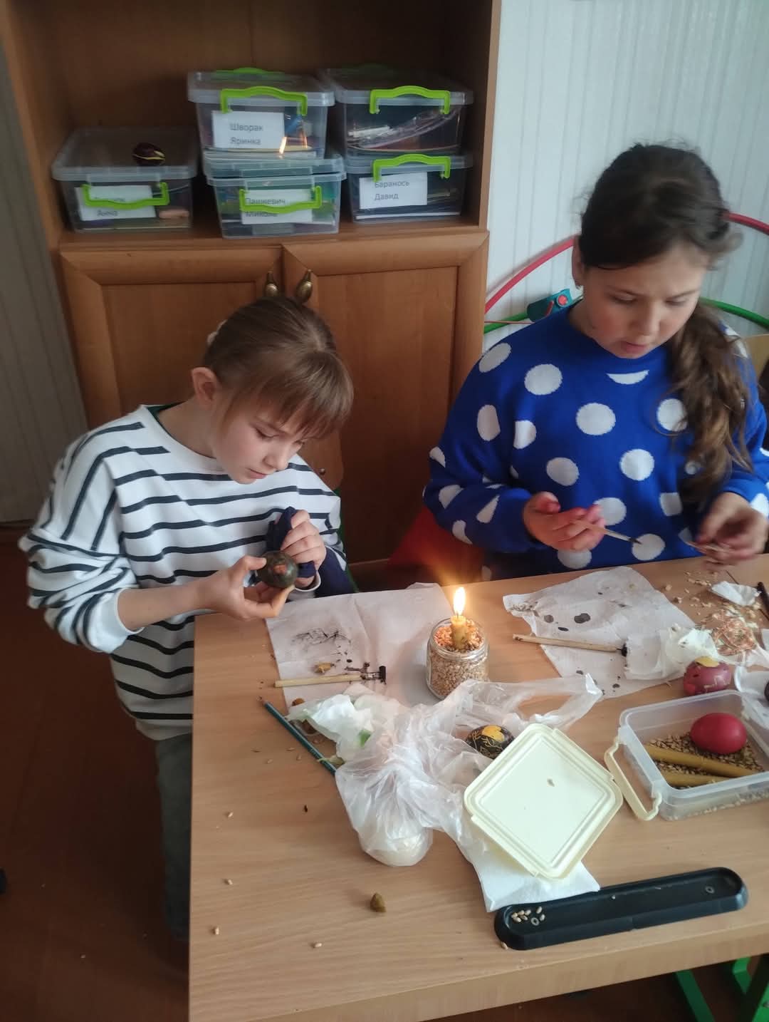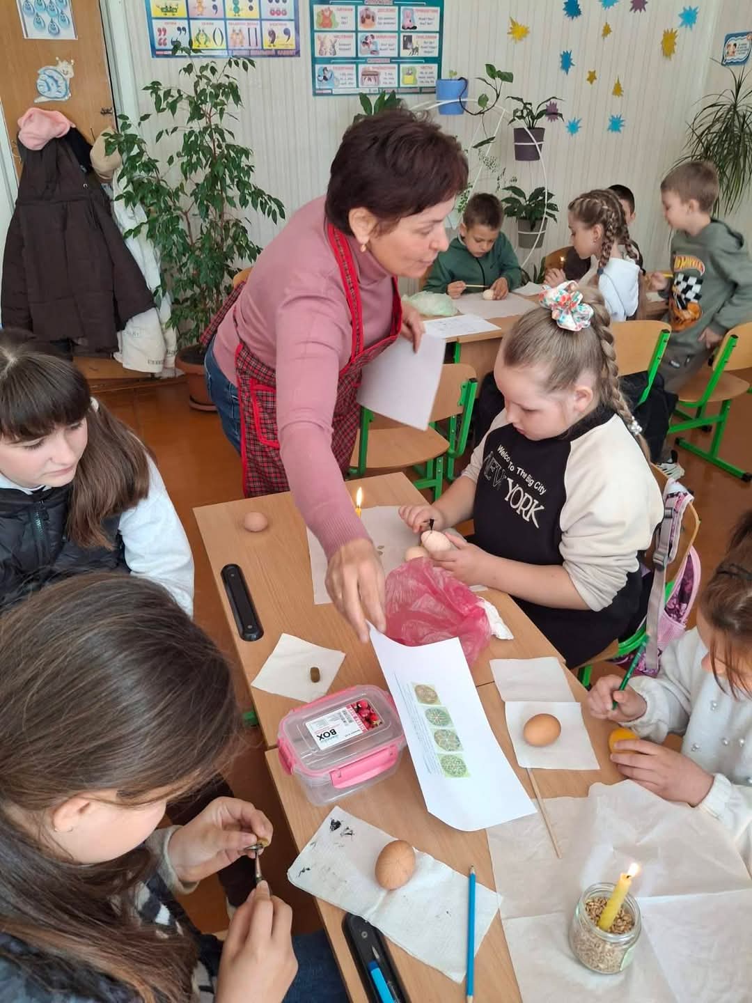 Писанка - це український символ життя, сонця, весняного відродження. Цей символ несе в світ добро, любов, Божу красу. Напередодні Великодня у нашому ліцеї також писалися писанки. Діти з цікавістю поринули у магію воску, вогню та візерунків-символів.