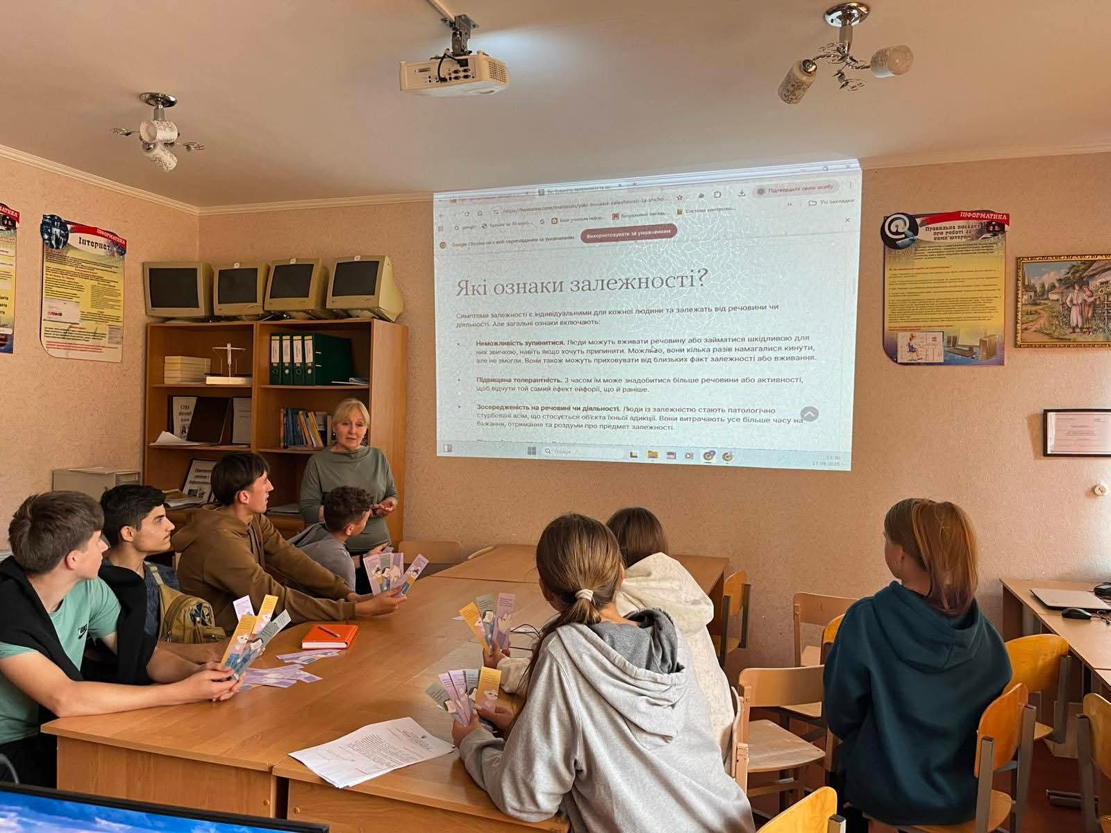 З метою підвищення рівня обізнаності підлітків щодо ментального здоров'я 25 вересня в ліцеї пройшли інформаційно - просвітницькі заходи в межах Обласного тижня профілактики залежностей. Старшокласники переглянули тематичні презентації "Які бувають залежності. Які ознаки залежностей" , "Проінформовані та захищені", "Інформаційна гігієна. Профілактика тютюнопаління, електронних цигарок, алкогольної залежності".